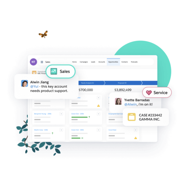 Sales Cloud lets everyone on the sales team see and share all the pertinent customer information, giving reps everything they need to close a deal. AI-driven prompts let you know when it’s the best time to take a specific action to drive a deal forward.