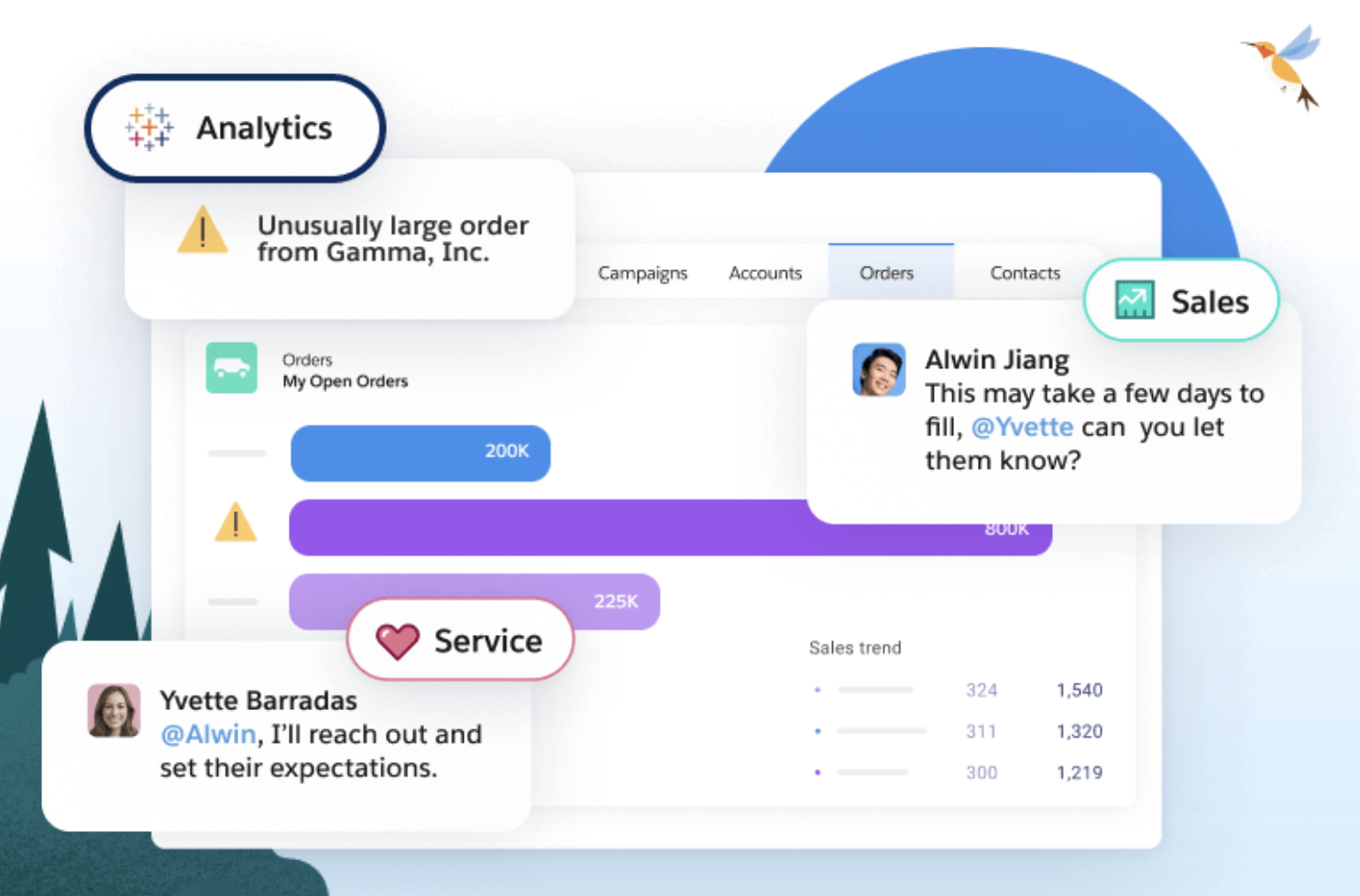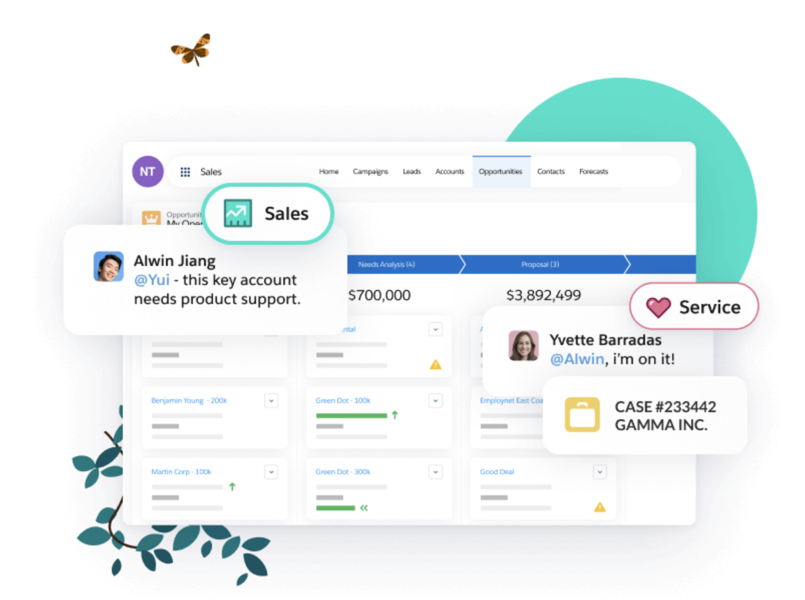 Sales Cloud lets everyone on the sales team see and share all the pertinent customer information, giving reps everything they need to close a deal. AI-driven prompts let you know when it’s the best time to take a specific action to drive a deal forward.