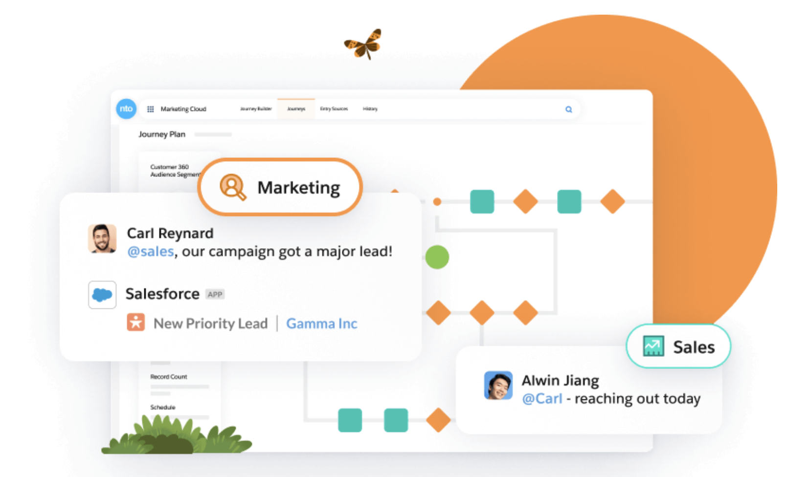 Use the Marketing Cloud app to send targeted, personalized messages to prospects, right where they are most likely to engage with them. When customers click on your ad or website, an automated message is sent to sales, notifying the team of a new lead.